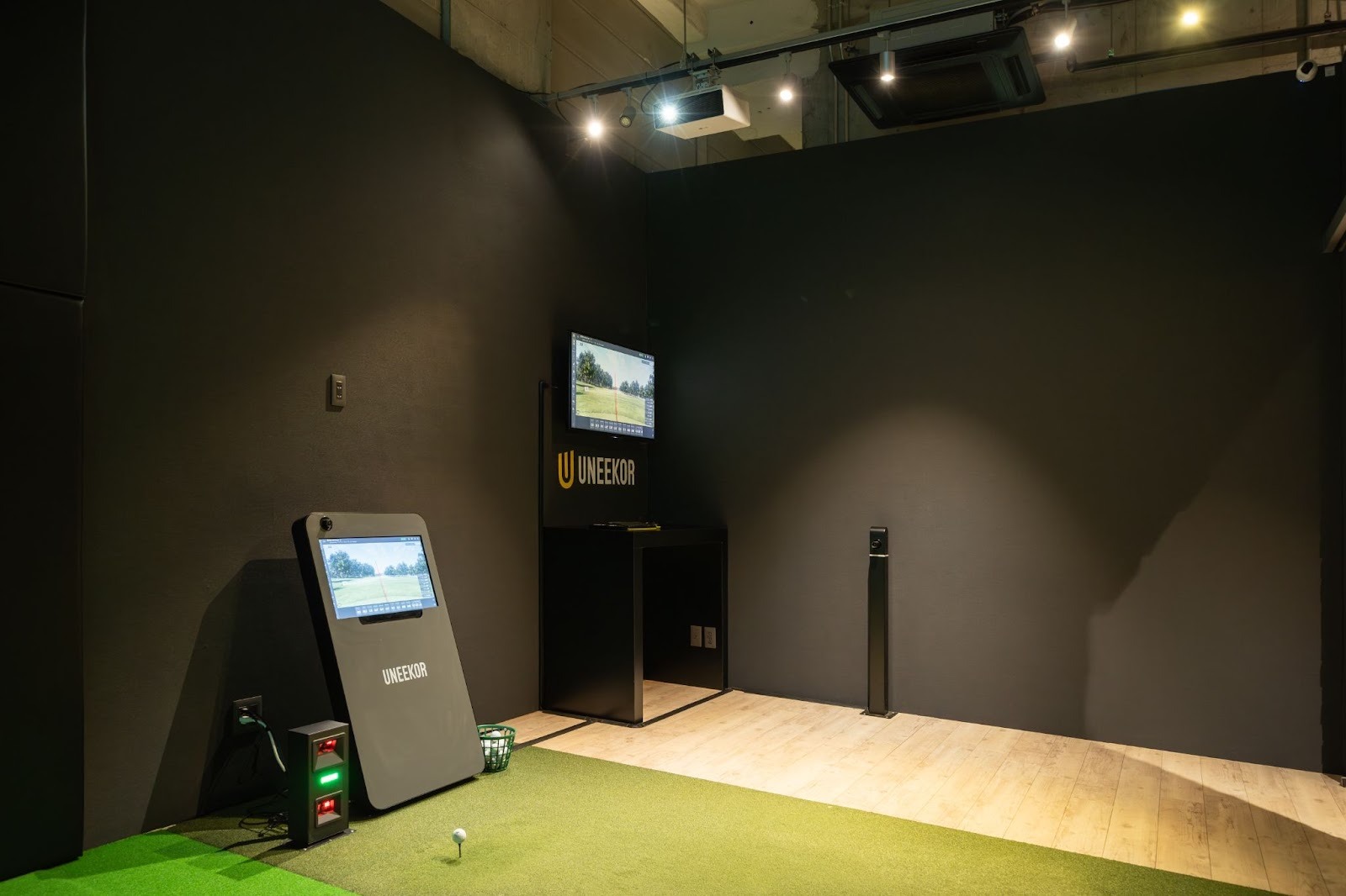 シミュレーター本体は、高性能な弾道測定システム(センサーやスイングカメラ)、コンピューターおよびソフトウェアで構成されるシステムの心臓部です。プレイヤーのショットを正確に計測するシステムの中核を担います。
